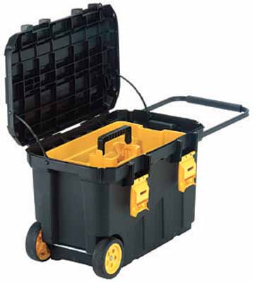Der kleinere Werkzeugkoffer in den Abmessungen 490 x 270 x 340 Millimeter ist ebenfalls aus Kunststoff und lässt sich Dank seines bequemen Tragegriffs auch in voll gepacktem Zustand mühelos transportieren. Außer einem herausnehmbaren Trageeinsatz sorgen mehrere Fächer im Deckel für Übersicht und Ordnung. Die Fächer können einzeln herausgeklappt werden, und bieten sich für die getrennte Aufbewahrung unterschiedlicher Kleinteile an.